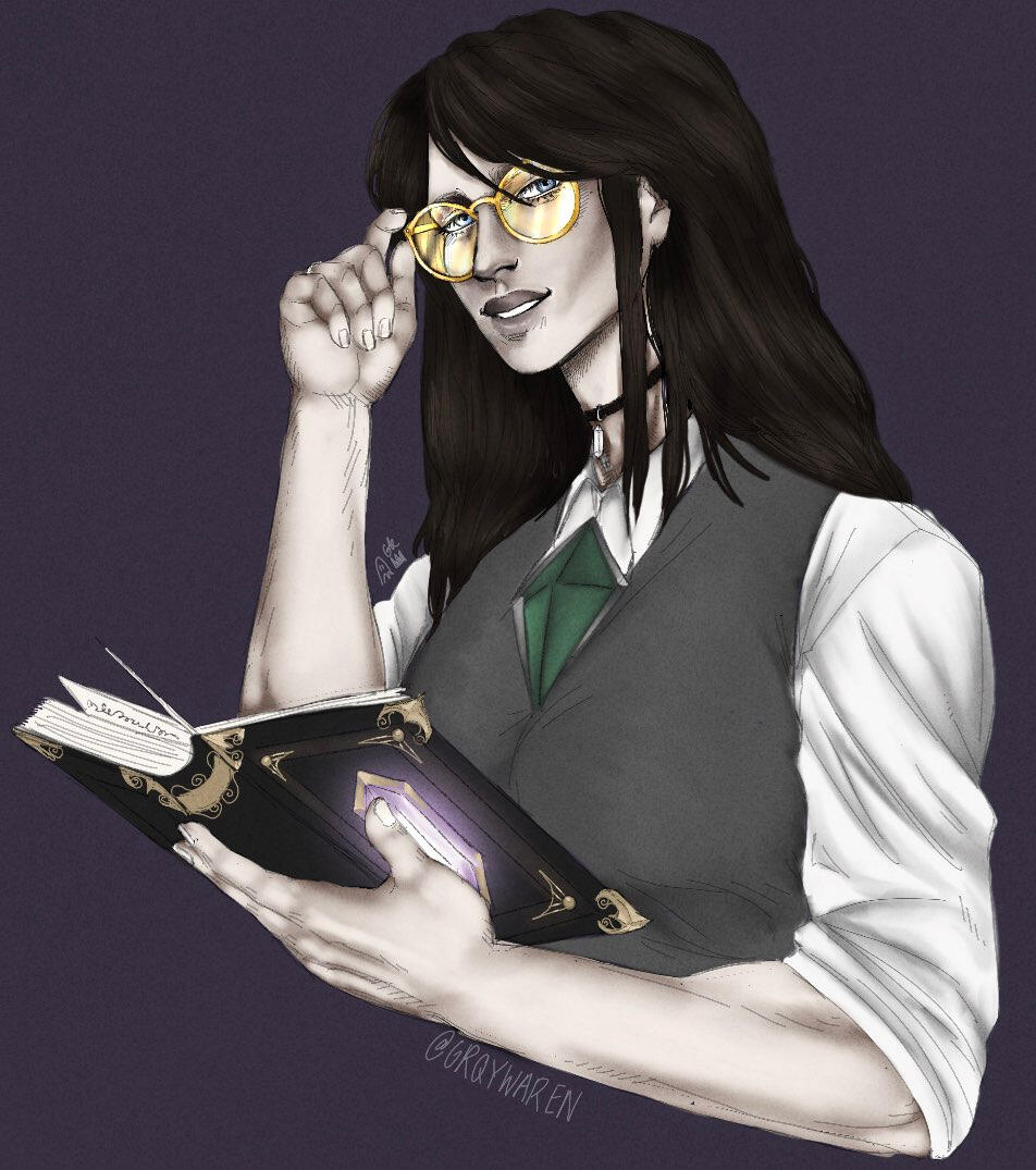 As a diligent and slightly dour retired spellbreaker, it's odd to see someone like Adyr relegated to tending archives in a small house. They aid the Head Archivist in handling the works in the house, assisting its running with their organizational skills and their oddly mechanical right arm.